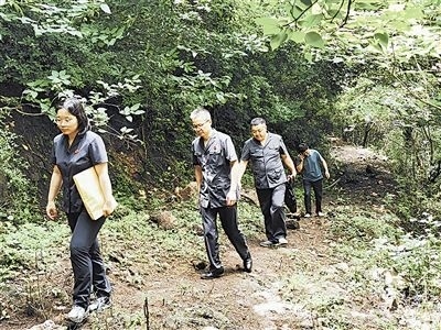 6月20日,安徽省明光市人民法院澗溪人民法庭法官頭頂炎炎烈日,穿越泥濘山道,徒步三公里,登上葛藤窩山,到一起環(huán)境污染責(zé)任糾紛案的現(xiàn)場(chǎng)查看樹木受損情況。
