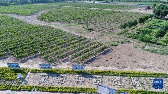 6月21日在河北省懷來縣拍攝的葡萄種質(zhì)資源庫(無人機(jī)照片)。