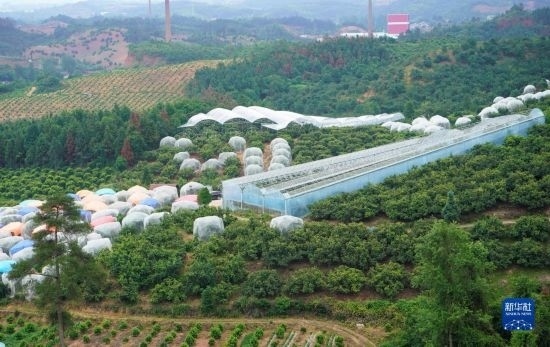 這是湖南省靖州苗族侗族自治縣渠陽鎮(zhèn)官團村楊梅種植戶為楊梅搭建的大棚和網(wǎng)室設(shè)施(6月18日攝)。
