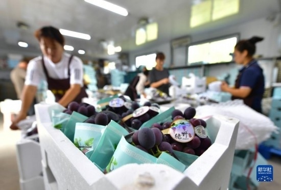 近日,遼寧省燈塔市種植的遼峰葡萄喜迎豐收。燈塔市出產(chǎn)的遼峰葡萄遠(yuǎn)近聞名,目前種植面積約1萬畝。當(dāng)?shù)匾研纬善咸雅嘤?、種植、銷售、倉儲、加工相關(guān)產(chǎn)業(yè)鏈,葡萄是當(dāng)?shù)剞r(nóng)民致富增收的特色產(chǎn)業(yè)。