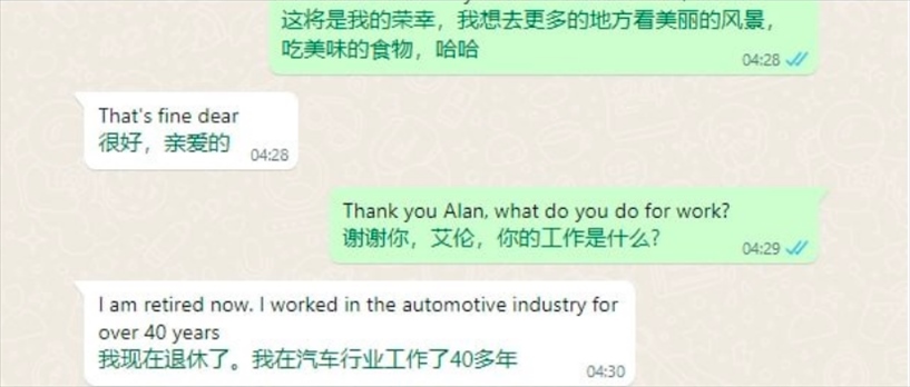 “通過對方發(fā)來的照片可以觀察他居住的環(huán)境、開的車等等,判斷他有沒有錢,沒有錢就直接丟掉不聊了。詐騙團伙里的組長、團長或者是其他騙到很多錢的人,也會分享自己聊天經(jīng)驗,告訴我們有哪些地方需要改進?!?/p>