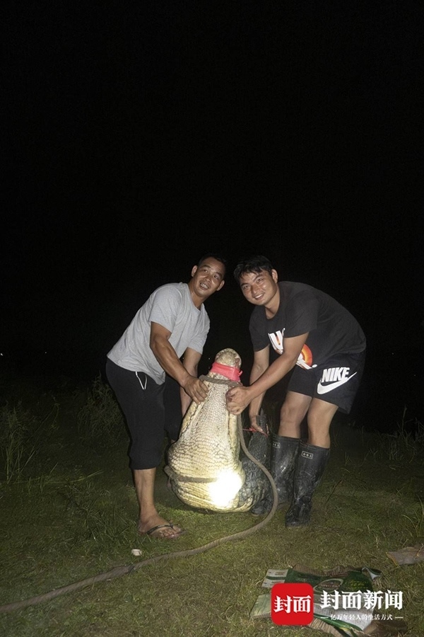 9月16日深夜,封面新聞記者從廣東茂名茂南區(qū)“出逃”暹羅鱷抓捕現(xiàn)場獲悉,當(dāng)夜有3條暹羅鱷被專業(yè)人員從養(yǎng)殖場外的水域中抓捕上岸。9月11日,茂南區(qū)一鱷魚養(yǎng)殖場因洪水沖塌圍墻造成部分鱷魚“出逃”,經(jīng)過連續(xù)6天的搜尋,截至16日24時,養(yǎng)殖場中原養(yǎng)殖的71條暹羅鱷已有69條被抓獲,僅剩2條仍在搜尋。