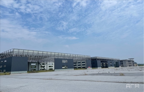 平輿通用機場,機場建筑外墻仍未粉刷,鋼架結(jié)構(gòu)的建筑內(nèi)長滿荒草。央廣網(wǎng) 圖