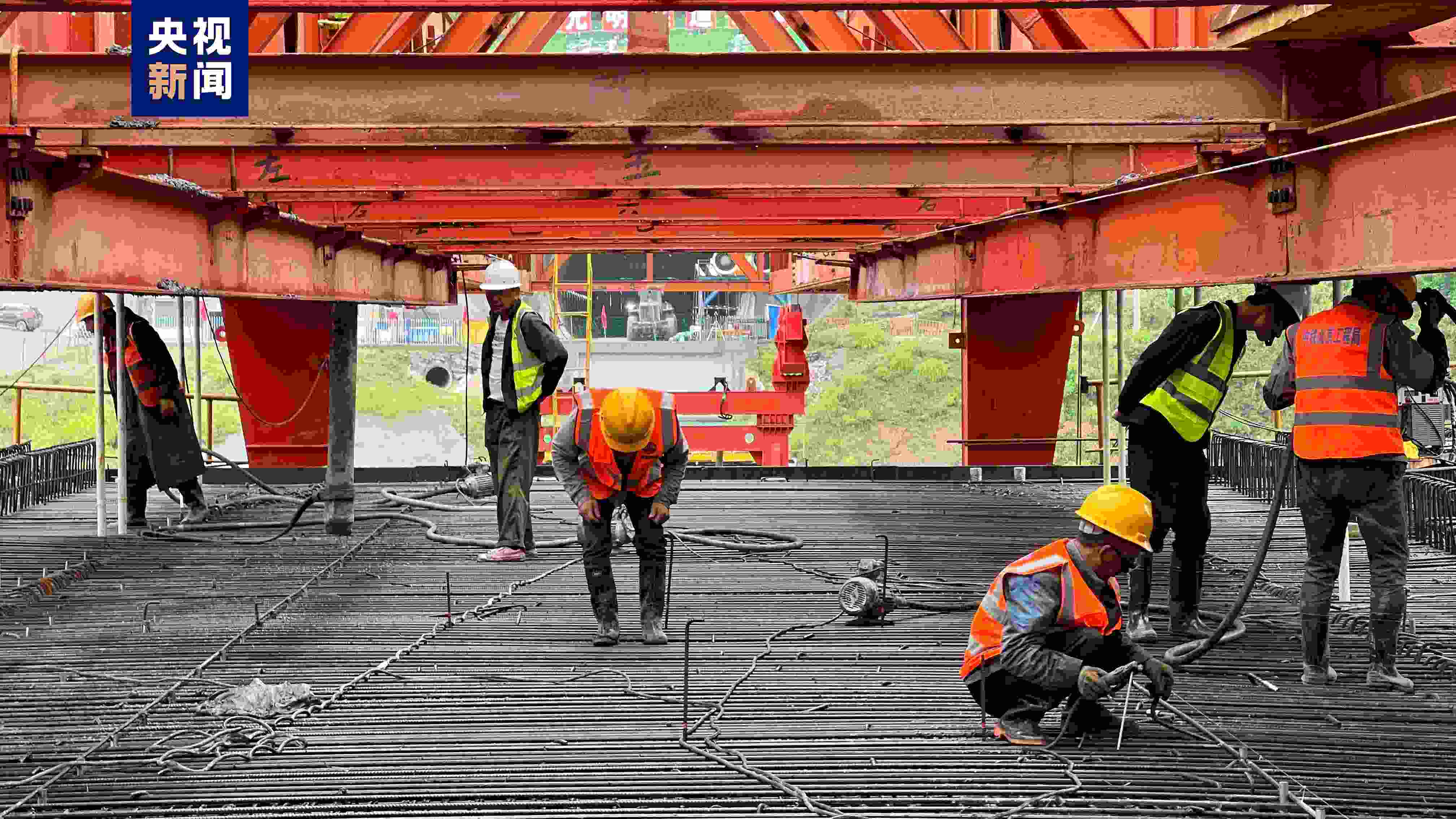 河水壩大橋位于重慶市開州區(qū)巫山鎮(zhèn)河龍村北側(cè),橋址跨越河谷地形起伏較大,植被茂密,水面寬約12米,橋址地層巖性主要為軟塑狀粉質(zhì)黏土,層厚約2.1米,具有承載力低、壓縮性高、厚度分布不均等特點,地質(zhì)條件較為復雜。本次澆筑成功的是河水壩大橋首孔現(xiàn)澆梁,經(jīng)過施工人員連續(xù)10小時的奮戰(zhàn),孔長32m,高3.03m,重約900t的移動模架現(xiàn)澆梁順利完成混凝土澆筑。據(jù)中鐵北京工程局成達萬高鐵項目一工區(qū)經(jīng)理烏小平介紹:“河水壩大橋首孔現(xiàn)澆梁采用移動模架現(xiàn)澆法施工,制梁具有機械化程度高、靈活性強、節(jié)約人力成本、施工周期短、使用輔助設(shè)備少、重復利用性高等特點,既保證了工程質(zhì)量,又能加快施工進度,具有良好的經(jīng)濟效益?!币苿幽<墁F(xiàn)澆法施工有效解決了控制性工程長大隧道架梁機無法及時架梁的問題,縮短了整體工期,確保項目按期順利推進。