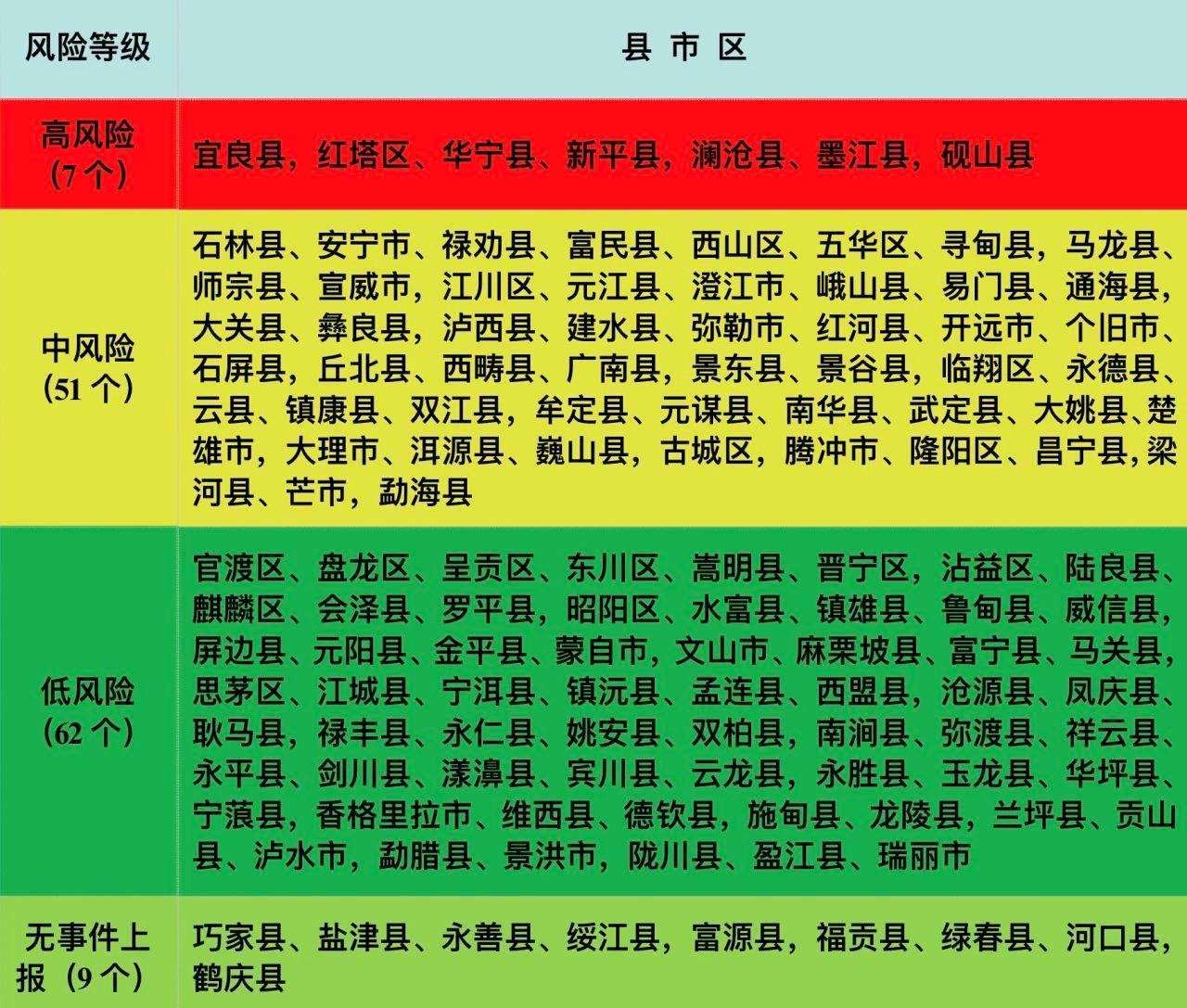 為切實(shí)維護(hù)廣大人民群眾身體健康和生命健康,有效減少有毒野生菌中毒事件發(fā)生,云南省依據(jù)2020—2022年全省野生菌中毒數(shù)據(jù)并結(jié)合各地有毒野生菌種類(重點(diǎn)關(guān)注中毒致死的野生菌亞稀褶紅菇,劇毒鵝膏類等),將云南所轄129個縣(市、區(qū))野生菌中毒風(fēng)險(xiǎn)分為高、中、低三個等級,累計(jì)中毒事件起數(shù)≥100起或死亡人數(shù)≥3人的地區(qū)劃定為高風(fēng)險(xiǎn)地區(qū),累計(jì)中毒事件起數(shù)為30—99起或死亡人數(shù)為1—2人的地區(qū)劃定為中風(fēng)險(xiǎn)地區(qū),累計(jì)中毒事件起數(shù)<30起且無死亡的地區(qū)劃定為低風(fēng)險(xiǎn)地區(qū),繪制了《2023年云南省有毒野生菌中毒風(fēng)險(xiǎn)分級地圖》《2023年云南省有毒野生菌中毒風(fēng)險(xiǎn)分級表》。