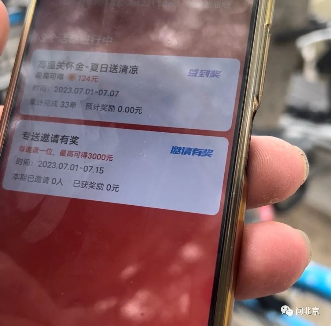 針對客服人員的這一回復(fù),有外賣騎手表示,平臺確實有發(fā)放類似的補貼,一名騎手打開自己的騎手app向記者展示,平臺在高溫天氣有開展高溫關(guān)懷金-夏日送清涼的活動。