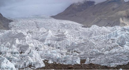 7月8日拍攝的崗布冰川。崗布冰川位于西藏浪卡子縣與康馬縣交界處,海拔5500米左右,冰塔林立,蔚為壯觀。