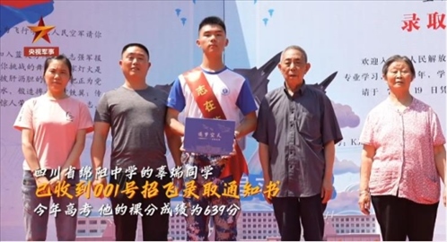 2023年度空軍首批招飛錄取通知書(shū)發(fā)放。收到001號(hào)錄取通知書(shū)的是四川省綿陽(yáng)中學(xué)的辜瑞同學(xué)。今年高考,他的裸分成績(jī)?yōu)?39分,有望入圍空軍與北京大學(xué)、清華大學(xué)、北京航空航天大學(xué)聯(lián)合培養(yǎng)“雙學(xué)籍”飛行學(xué)員預(yù)選對(duì)象。