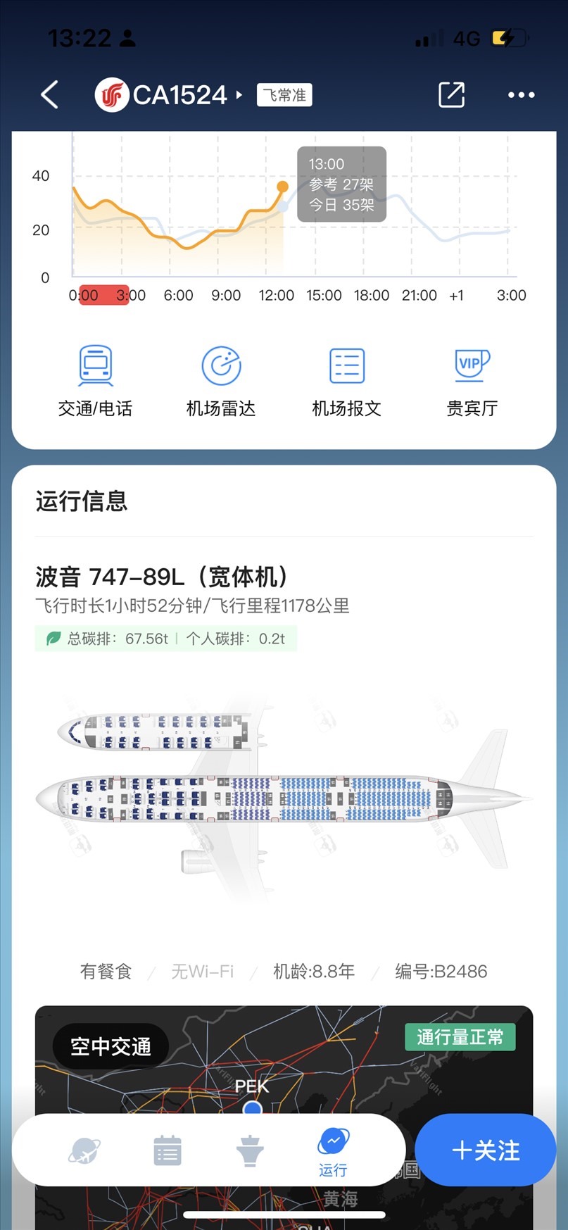 7月11日國航CA1524航班執(zhí)飛機型為波音747-89L。 飛常準(zhǔn)截圖