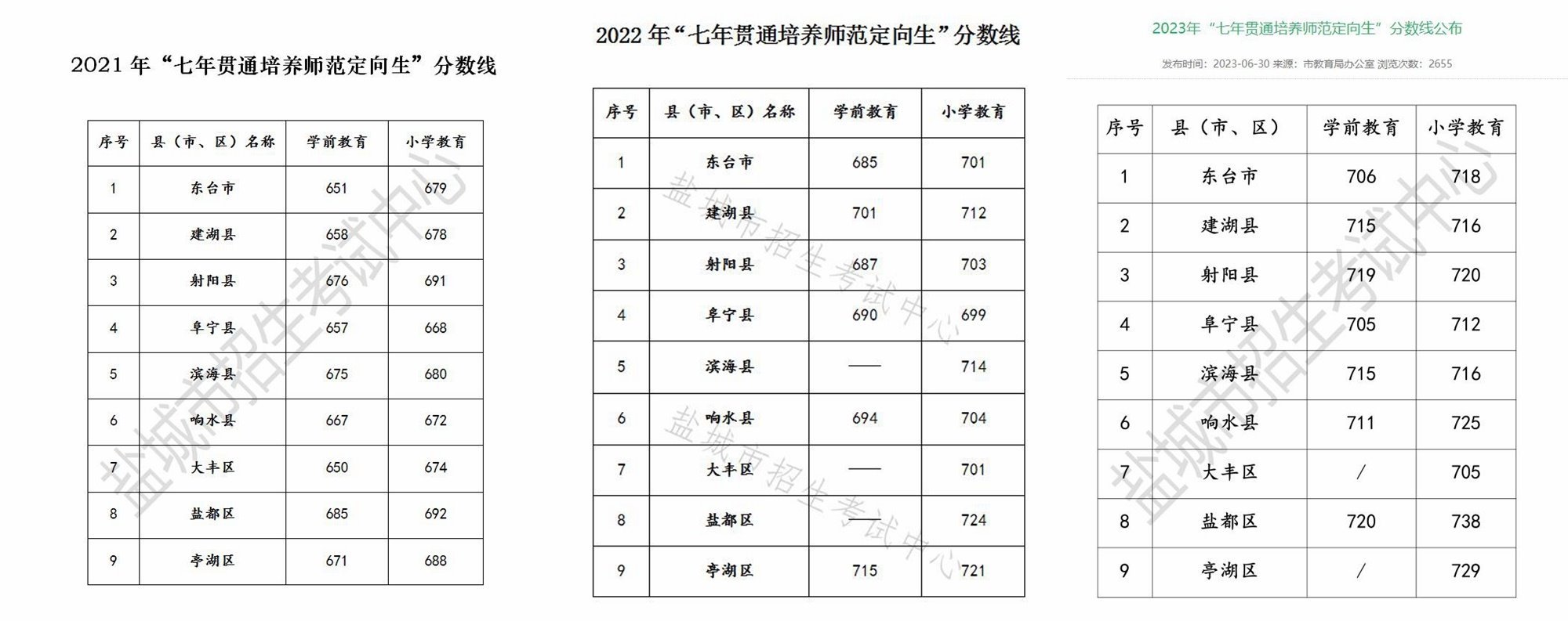 根據(jù)鹽城市教育局公布的2021年-2023年“七年貫通培養(yǎng)師范定向生”分?jǐn)?shù)線來(lái)看,該項(xiàng)目的錄取分?jǐn)?shù)線也在逐年升高。學(xué)前教育專業(yè)錄取分?jǐn)?shù)線從最高685分升至最高720分,小學(xué)教育專業(yè)錄取分?jǐn)?shù)線從最高692升至最高738分。