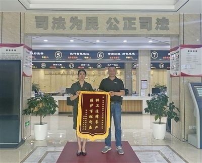 柯城區(qū)人民法院執(zhí)行干警收到當事人送來的錦旗。 盧夢瑩 攝