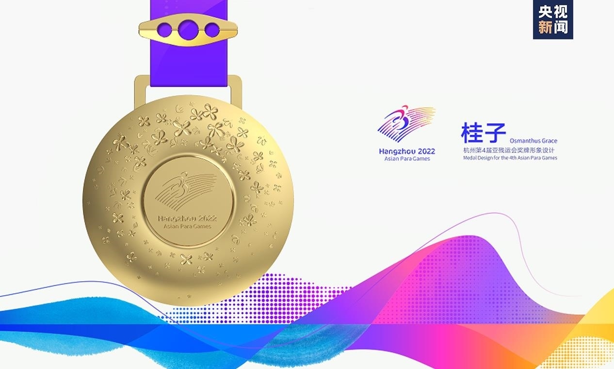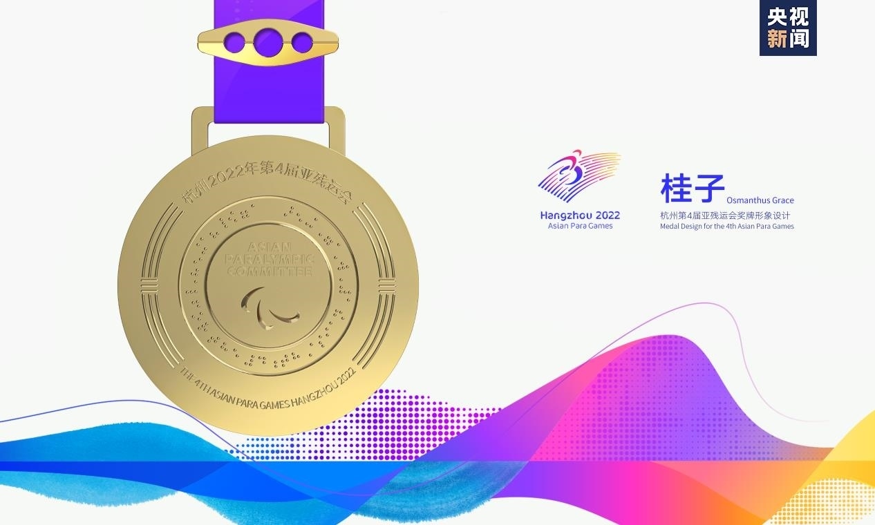 獎牌取名為“桂子”,源自描寫杭州的名句“山寺月中尋桂子”,寓含江南意境和浪漫色彩。系繼會徽“向前”,吉祥物“飛飛”,色彩系統(tǒng)“潤澤”,火炬“桂冠”后又一杭州亞殘運會視覺形象體系的核心元素,是亞殘運文化美學(xué)的重要表達。