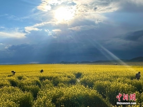 盛夏七月,在阿壩藏族羌族自治州若爾蓋縣唐克鎮(zhèn)白河牧場,一片萬畝油菜花開得正艷。據(jù)若爾蓋縣科學(xué)技術(shù)和農(nóng)業(yè)畜牧局副局長徐建平介紹,與平原內(nèi)陸地區(qū)不同的是,地處若爾蓋高原的白河牧場,種植的是春油菜,一般5月中旬播種完成,6月底至7月份正是油菜花盛開的季節(jié)。