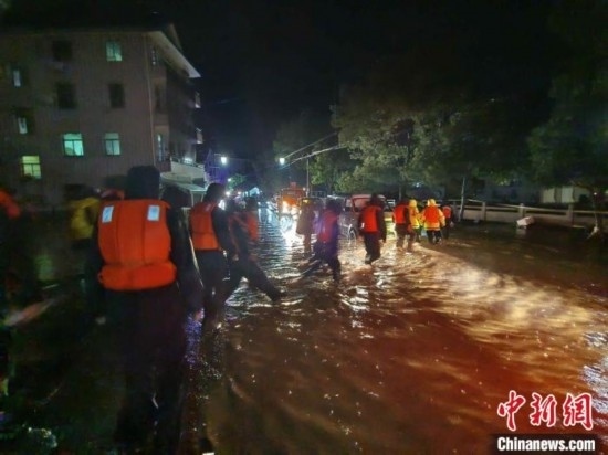 如在富陽區(qū)大源鎮(zhèn)青山村,暴雨引發(fā)的洪水流過村莊道路,水勢湍急,村內(nèi)也出現(xiàn)停電情況,一些村民只能待在家中二樓,當?shù)卣e極開展救援、轉移工作。富陽常綠鎮(zhèn)也出現(xiàn)人員受困情況,當?shù)氐谝粫r間轉移受困人員的同時,安排多臺挖掘機、鏟車不間斷運轉全力開展排水溝渠疏通、砂石淤泥清除等作業(yè)。在當?shù)佚堥T鎮(zhèn),5名游客因為突然降雨無法下山,后在消防隊的幫助下被安全送至山下。