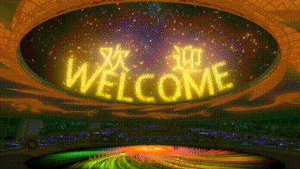 當(dāng)宣布本屆世界大學(xué)生運(yùn)動(dòng)會(huì)開幕時(shí),空中金色焰火熱烈綻放,隨后空中出現(xiàn)“歡迎”“WELCOME”字樣,隨著大運(yùn)會(huì)火炬塔被點(diǎn)燃,焰火在空中打出成都第31屆世界大學(xué)生夏季運(yùn)動(dòng)會(huì)U形會(huì)徽,體育場上空焰火呈現(xiàn)英文“Make Dreams Come True”,命運(yùn)與共,成就夢想。
