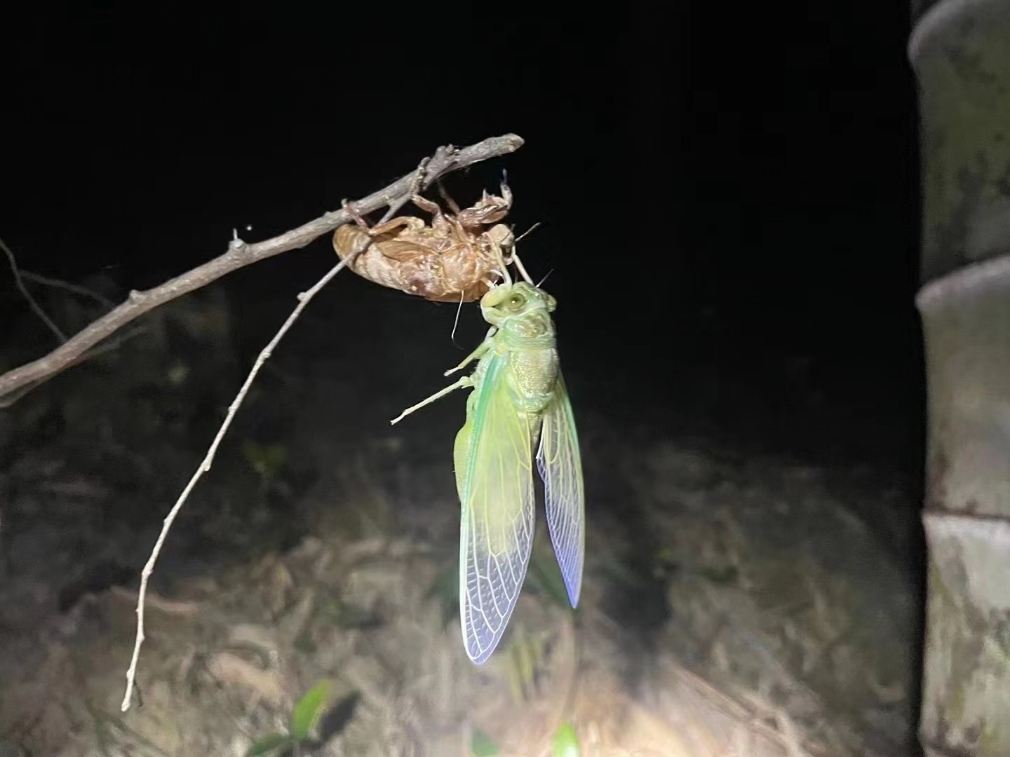 ▲高先生晚上捕捉的知了