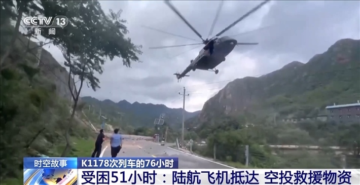 8月1日下午4:00,K1178次列車被困51小時(shí)后,某陸航旅4架滿載應(yīng)急物資的飛機(jī),克服不利氣象因素,在北京門頭溝地區(qū)執(zhí)行空投任務(wù),并為K1178次列車空投救援物資。然而,由于沿河城站位于山谷中,地形狹長,周邊環(huán)境復(fù)雜,再加上氣象條件不好,空投一開始并不順利。