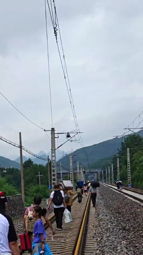 聽探過路的乘客說,目前有公路、鐵軌、山路這3個(gè)方向,軌道上的淤泥已經(jīng)能沒到膝蓋,山上破碎的石頭很鋒利、容易劃傷。他們決定沿著109國道走。