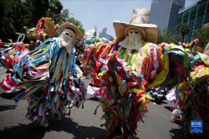 8月9日,在墨西哥首都墨西哥城,演員身著傳統(tǒng)服飾參加世界土著人民國(guó)際日慶祝活動(dòng)。1994年聯(lián)合國(guó)大會(huì)通過(guò)決議,將每年8月9日定為世界土著人民國(guó)際日。