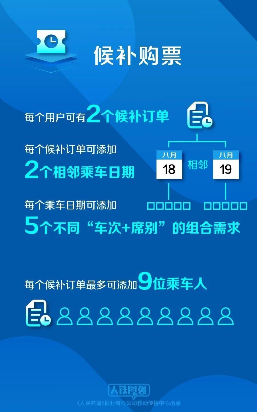 目前,旅客每天可提交發(fā)到站相同或同城不同車站的兩個相鄰日期候補(bǔ)車票,從以前的各2張增加到各5張。