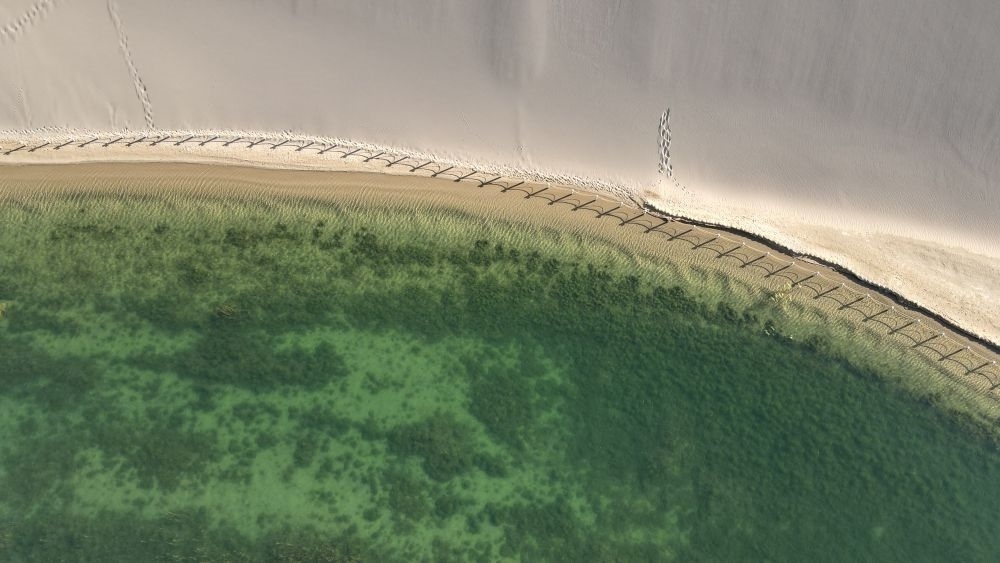 20多年來,月牙泉及其周邊實(shí)行嚴(yán)格的水資源管理。為維系沙泉共生的微妙平衡,泉水南北兩側(cè)的沙山被封禁,人們漫步在月牙泉周邊時,需要套上鞋套。