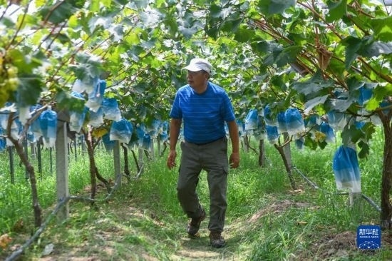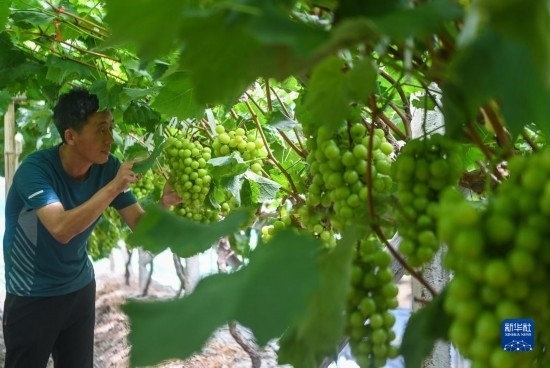 8月20日,在諸暨市姚江鎮(zhèn)紫草塢村阿群家庭農(nóng)場(chǎng)的葡萄大棚內(nèi),種植戶壽怒濤查看葡萄的成熟度。壽怒濤通過農(nóng)技培訓(xùn)學(xué)習(xí)葡萄種植新技術(shù),提高葡萄的口感和產(chǎn)量。