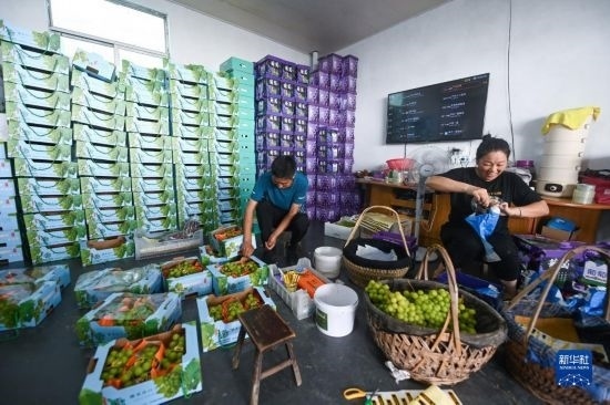 8月20日,在諸暨市姚江鎮(zhèn)紫草塢村阿群家庭農(nóng)場(chǎng)內(nèi),種植戶打包成熟的葡萄,準(zhǔn)備運(yùn)往市場(chǎng)。