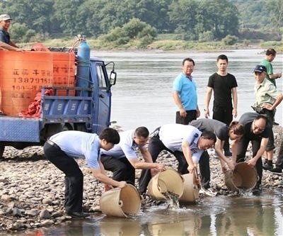 弋陽法院法官聯(lián)合相關(guān)部門開展增殖放流活動。