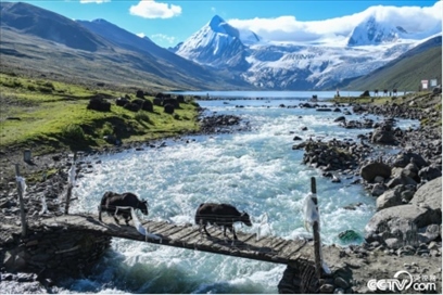 在西藏那曲市比如縣境內(nèi)的薩普雪山,藍(lán)天、雪山、湖泊構(gòu)成一幅美麗的生態(tài)畫(huà)卷。