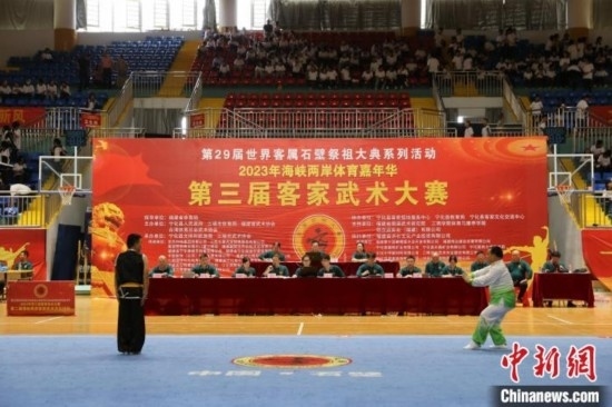 5日,第三屆客家武術(shù)大賽在福建省三明市寧化縣體育中心開賽,來(lái)自福建、江西、臺(tái)灣等地武術(shù)團(tuán)體、武術(shù)協(xié)會(huì)33支隊(duì)伍、500多名武術(shù)愛好者參加比賽。