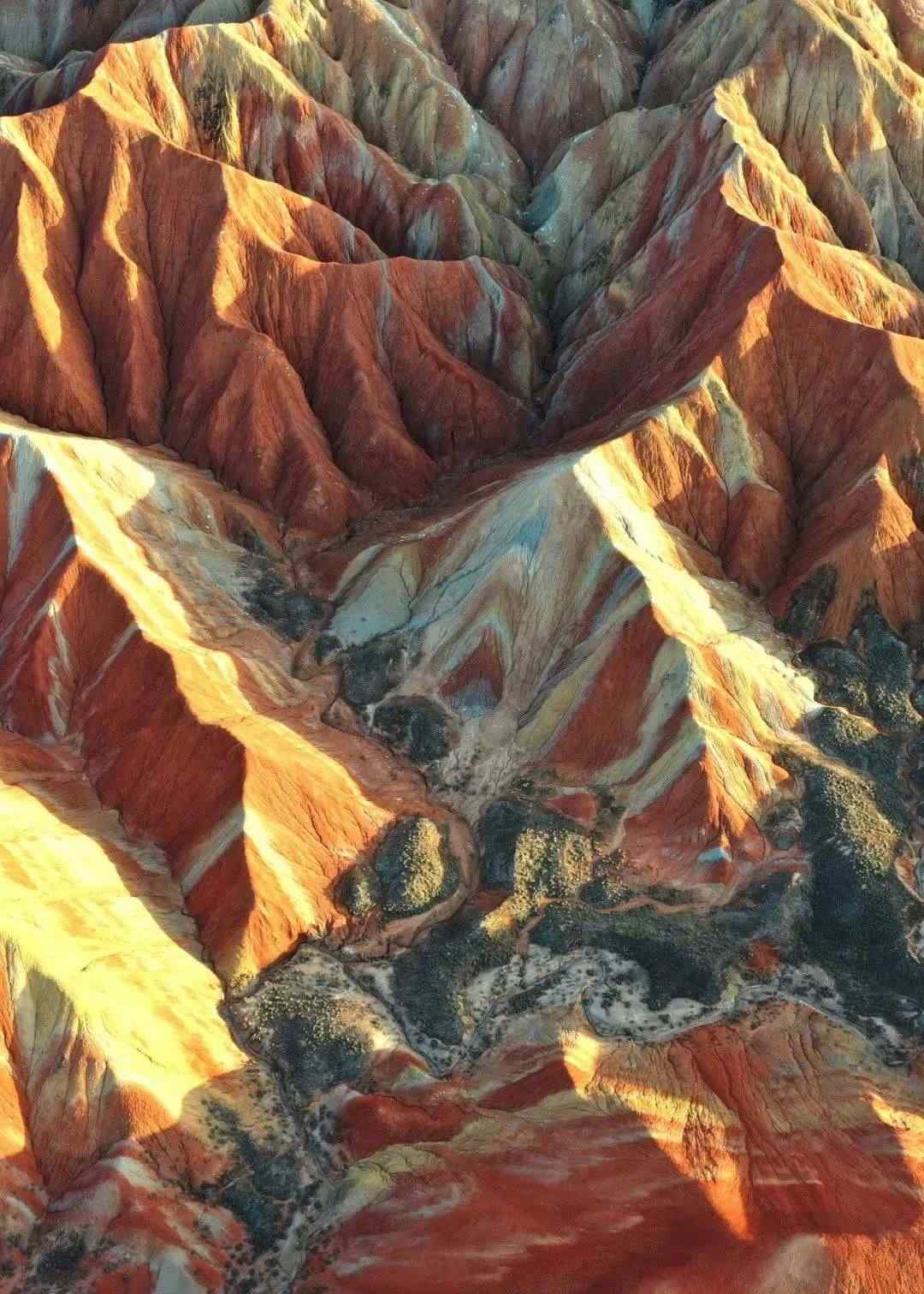 據(jù)了解,該景區(qū)內的丹霞地貌形成于侏羅紀白堊紀時期,表面由細砂巖和泥質巖構成。經專家研究考證,彩色丘陵地層的形成和誕生是以百萬年為地貌單元,是不可再生、不可復制的地質遺跡。