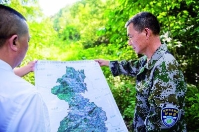 湖南省長沙市瀏陽市金剛鎮(zhèn)林長制專職護林員在記錄古樹生長情況。新華社發(fā)