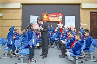 圖⑨:送法進(jìn)校園。圖為諸暨法院法官來(lái)到浣東小學(xué)普法授課,結(jié)合小故事、小案例為同學(xué)們答疑解惑,豐富法律知識(shí)。