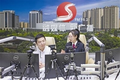 圖⑥:“云端”普法。圖為諸暨法院干警走進(jìn)諸暨市FM98.2融媒體廣播間,為線上聽(tīng)眾普及法律知識(shí),并積極宣傳新時(shí)代“楓橋經(jīng)驗(yàn)”。