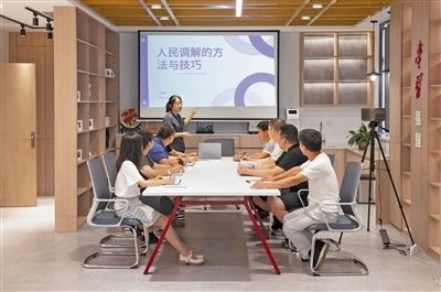 圖④:調(diào)解員培訓(xùn)。圖為楓橋法庭法官為轄區(qū)人民調(diào)解員進(jìn)行現(xiàn)場(chǎng)培訓(xùn),從如何提升調(diào)解工作的方法與技巧入手結(jié)合案例逐一進(jìn)行指導(dǎo)。