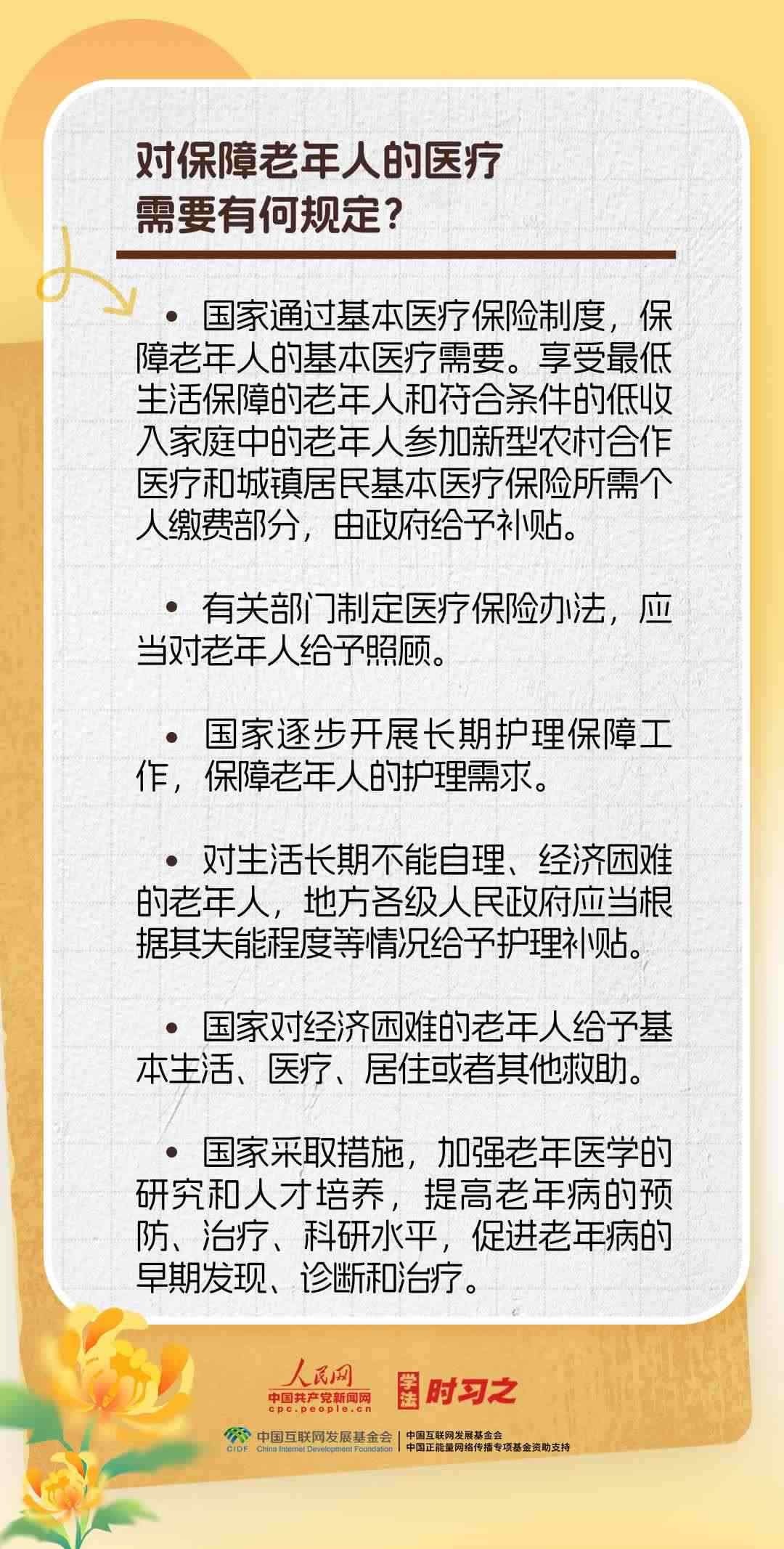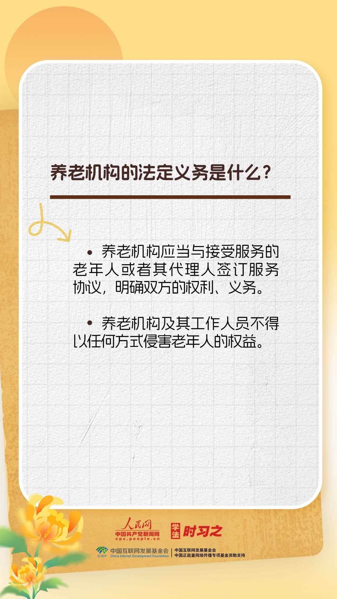 《中華人民共和國(guó)老年人權(quán)益保障法》的出臺(tái)進(jìn)一步保障了老年人的合法權(quán)益,弘揚(yáng)了中華民族敬老、養(yǎng)老、助老的美德。重陽(yáng)節(jié),一起來(lái)了解老年人權(quán)益保障法的相關(guān)規(guī)定。