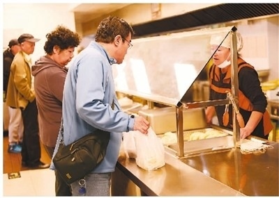 10月17日,北京市朝陽區(qū)團(tuán)結(jié)湖福壽苑老年餐桌食堂內(nèi),顧客在挑選晚餐。黃金玉攝