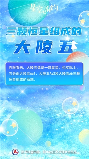 中國科學(xué)院紫金山天文臺(tái)科普主管王科超說,在人們?nèi)庋劭磥?,大陵五只是秋季東北方向天空中一個(gè)遙遠(yuǎn)的亮點(diǎn),像是一顆星星。但實(shí)際上,它是由大陵五Aa1、大陵五Aa2和大陵五Ab三顆恒星組成的系統(tǒng)。這三顆恒星被引力“束縛”在一起,共同組成大陵五這個(gè)三合星系統(tǒng)。系統(tǒng)之中三顆星的相對(duì)位置還會(huì)發(fā)生變化,并影響到大陵五的亮度。天文學(xué)上把這種亮度時(shí)常變化的恒星或恒星系統(tǒng)稱作變星。大陵五也是秋季星空著名星座英仙座中的第二亮星。