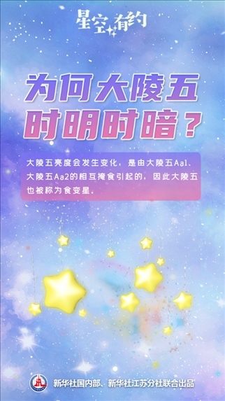 新華社南京11月4日電(記者王玨玢、邱冰清)11月的夜晚,東北方向的夜空之中閃爍著“一顆”時(shí)明時(shí)暗的星星。每隔兩三天,它的亮度就會(huì)經(jīng)歷一輪變化,周而復(fù)始,就好像會(huì)“眨眼”一樣。這就是著名的變星:大陵五。變星是怎么回事?大陵五為什么會(huì)“眨眼”?天文科普專家為您揭秘。