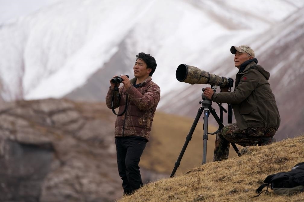 于是,奚志農(nóng)將達(dá)杰和次丁納入了“牧民攝影師成長計劃”,給他們配備器材、培訓(xùn)攝影技術(shù)。之后,因?yàn)榕牡椒浅ky得的雪豹求偶、交配全過程,更求曲朋也順利加入,成為其中一員。