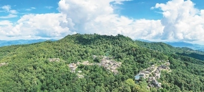 景邁山古村寨掩映在大片山林茶園之間。新華社記者 李 賀攝