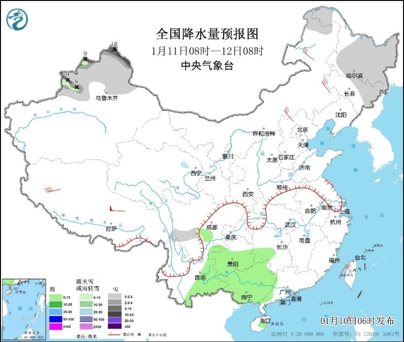 預(yù)計(jì)10-12日,新疆北部多降雪,降雪量以小到中雪為主,阿勒泰、塔城、伊犁河谷等地部分地區(qū)有大到暴雪,局地大暴雪。此外,10日夜間到11日,內(nèi)蒙古東北部、黑龍江、吉林等地的部分地區(qū)有小雪。