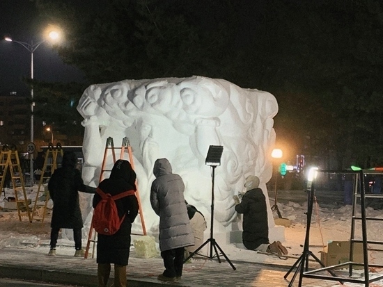 能夠與冰雪“親密接觸”,中國美術(shù)學(xué)院的熊竣苓要感謝剛剛在哈爾濱落幕的第十六屆國際大學(xué)生雪雕大賽。他所在的團(tuán)隊(duì)由包括他在內(nèi)的4位南方同學(xué)組成,他們創(chuàng)作的雪雕作品《盤古開天》獲得了一等獎(jiǎng)。這段比賽經(jīng)歷讓第一次去哈爾濱的熊竣苓非常難忘,“最近哈爾濱很火,雖然我是去參加比賽的,但能去哈爾濱一趟,也非常激動(dòng)了。我記得我們從機(jī)場到酒店的路上,透過車窗看到了霧凇,一下子就讓我這個(gè)南方人感受到了北方冬天的美?!彼貞?,做雪雕時(shí),他和另外3位同學(xué)都既緊張又興奮,“我們都是第一次觸摸雪做雕塑,此前在學(xué)校練習(xí)時(shí)是用泥巴或石膏,跟雪是完全不同的質(zhì)感,所以過程中我們都小心翼翼,非常緊張;同時(shí),我們都是第一次見到這么多雪,太激動(dòng)了?!?/p>
