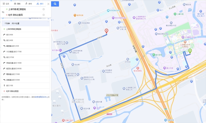 “途經滬青平公路時,平臺也愛規(guī)劃逆行路線。”陳陽陽提供的第3條逆行路線正屬于這一情況。這是從京華路187弄送往南山雨果小區(qū)的一單,平臺規(guī)劃的路線中,指示騎手從明珠路右拐進入滬青平公路向西騎行至葉聯路再向南。可是,滬青平公路在葉聯路路口處沒有過街橫道線,此時,平臺索性規(guī)劃騎手沿著滬青平公路南側逆向騎行。1月8日,記者實地走了一遍這段路線:若騎手沿著滬青平公路北側騎行,需一直向西騎到徐盈路才能過街,再沿著滬青平公路南側向東抵達葉聯路。手機顯示,繞行路線比美團平臺規(guī)劃路線遠了1.2公里。