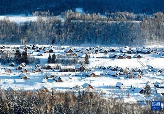 1月17日拍攝的新疆阿勒泰地區(qū)布爾津縣禾木村(無人機照片)。