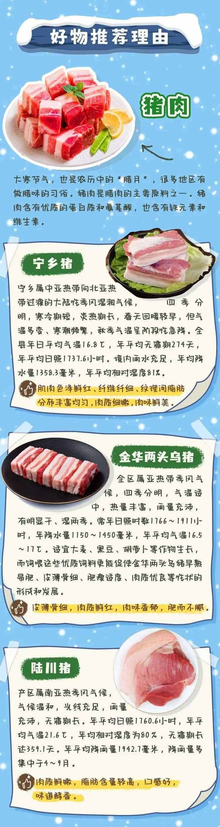 大寒節(jié)氣除了吃糯米飯外,還有一個(gè)習(xí)俗就是做臘肉、吃臘肉?!岸D風(fēng)腌,蓄以御冬”,這個(gè)時(shí)節(jié),最適合風(fēng)干制作臘味。豬肉,是臘肉的主要原材料之一。我國(guó)的養(yǎng)豬史,最早可以追溯到新石器時(shí)代,目前豬肉產(chǎn)區(qū)可以說(shuō)是遍布全國(guó),不同地區(qū)的豬肉也有不同的特色和風(fēng)味。