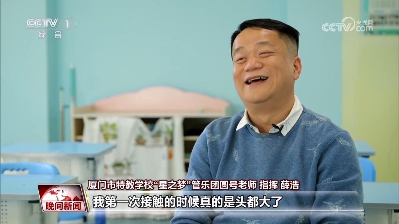 廈門(mén)市特教學(xué)?!靶侵畨?mèng)”管樂(lè)團(tuán)領(lǐng)隊(duì) 陳旭飛:據(jù)我所知的話,國(guó)內(nèi)是沒(méi)有這樣的聽(tīng)障學(xué)生為主的管樂(lè)團(tuán)。