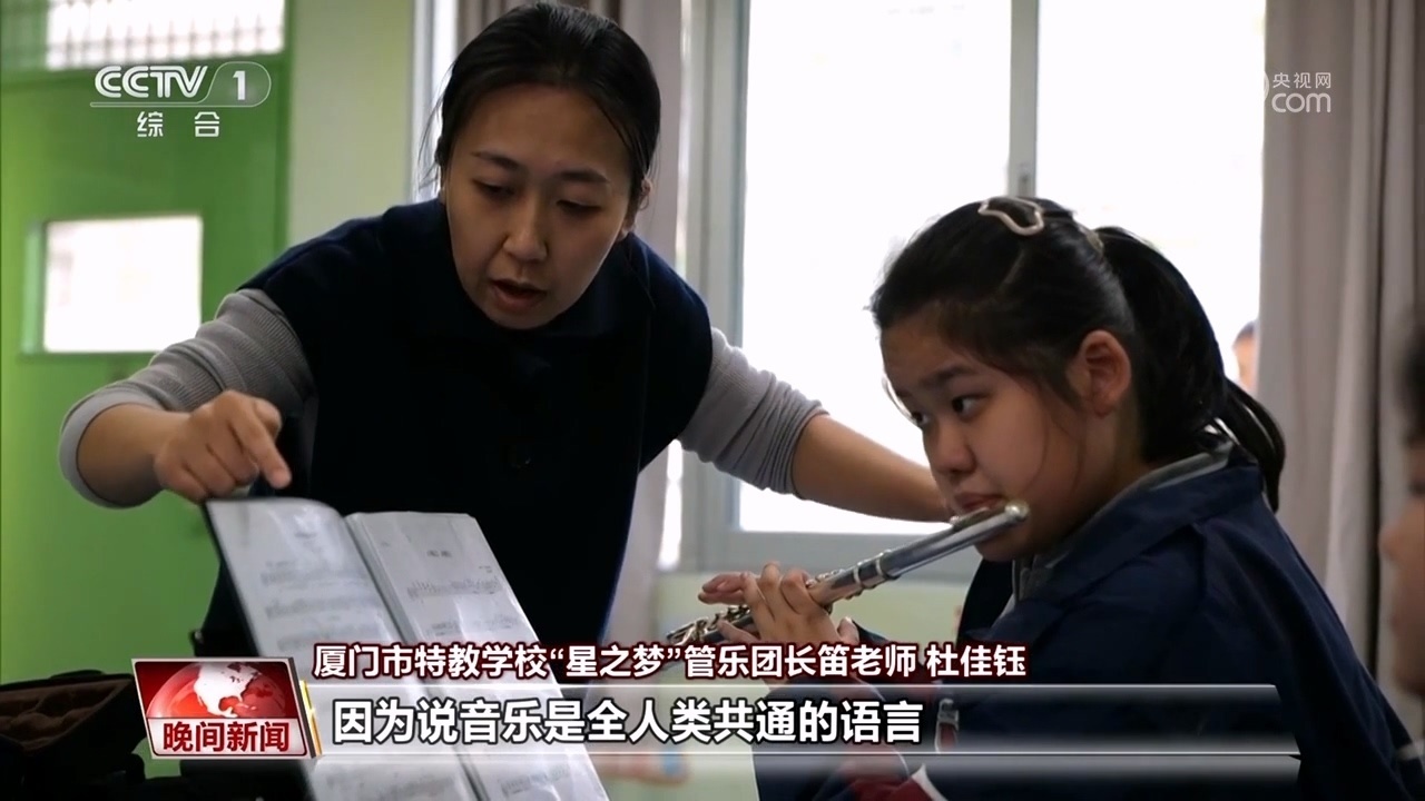 廈門(mén)市特教學(xué)校“星之夢(mèng)”管樂(lè)團(tuán)長(zhǎng)笛老師 杜佳鈺:因?yàn)檎f(shuō)音樂(lè)是全人類(lèi)共通的語(yǔ)言,我希望這件事情的意義也是能不要把這些孩子排除在全人類(lèi)的音樂(lè)的共同事業(yè)的范圍之外。