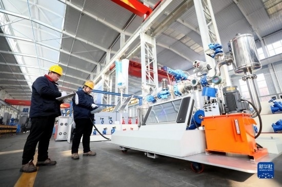 12月21日,在位于隆堯縣的河北遠大閥門集團有限公司大口徑車間,工人在查看智能調(diào)水設備運行情況。