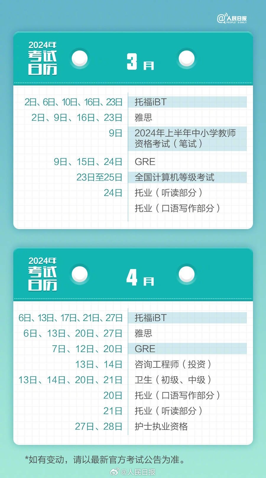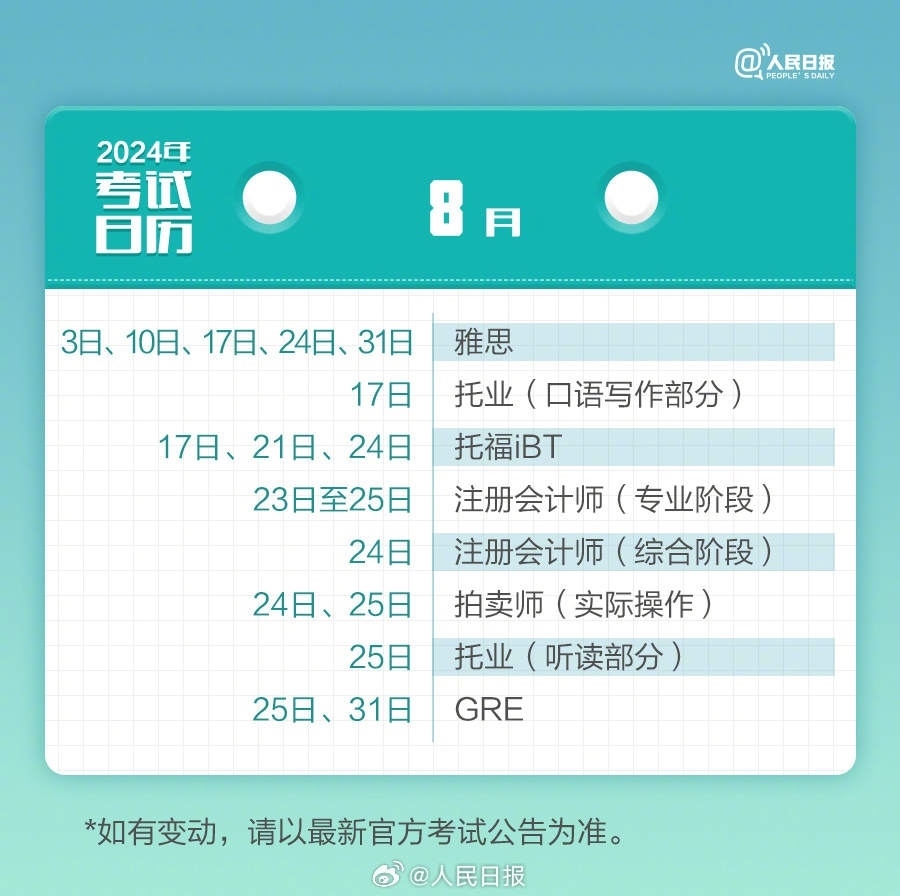 2024年已過(guò)去20多天,你的學(xué)習(xí)考試計(jì)劃開(kāi)始了嗎?教師資格考試、計(jì)算機(jī)等級(jí)考試、注冊(cè)會(huì)計(jì)師、法律職業(yè)資格……提前計(jì)劃,不留遺憾,為目標(biāo)努力起來(lái)!收好2024考試日歷↓↓一起加油!